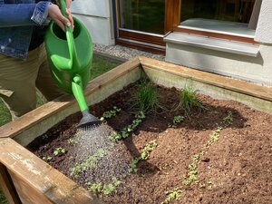 Naturerlebnisse, Nachhaltigkeit und gesunde Ernährung stehen bei diesem Schwerpunkt im Fokus. Um den Kindern diese Themen näher zu bringen, werden u.a. die Hochbeete gepflegt, die jedes Jahr eine reiche Ernte erzielen.